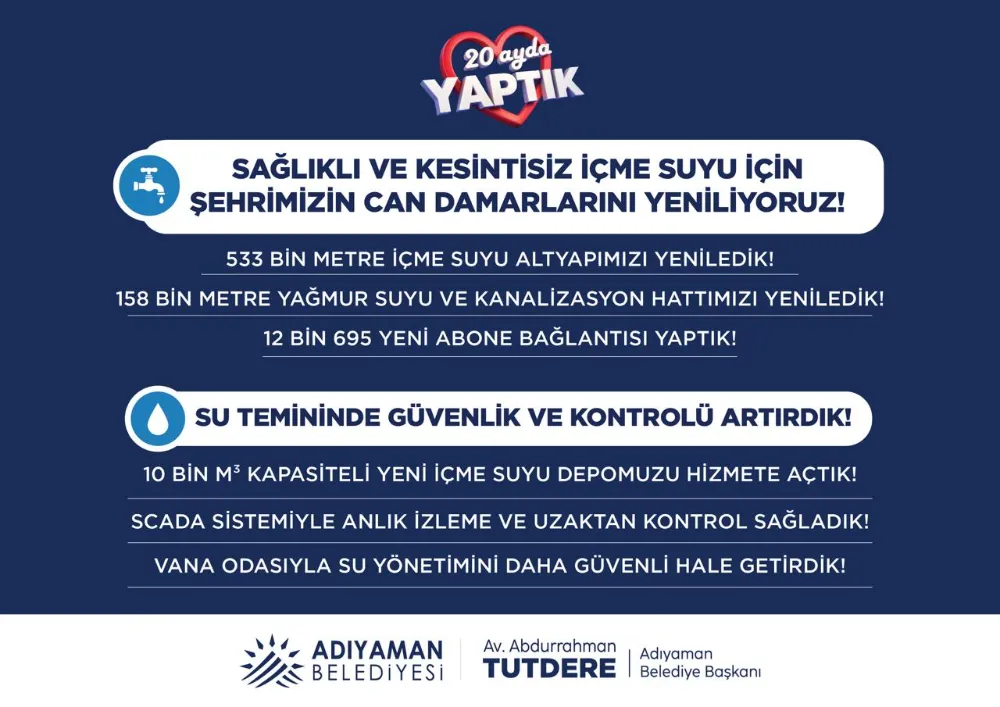 Adıyaman belediyesinde içme suyu alt yapı yenilenmesi