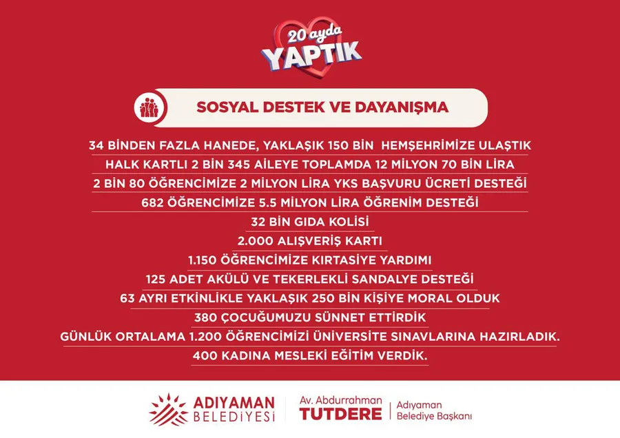 Adıyaman Belediyesin'den sosyal Destek ve dayanışma
