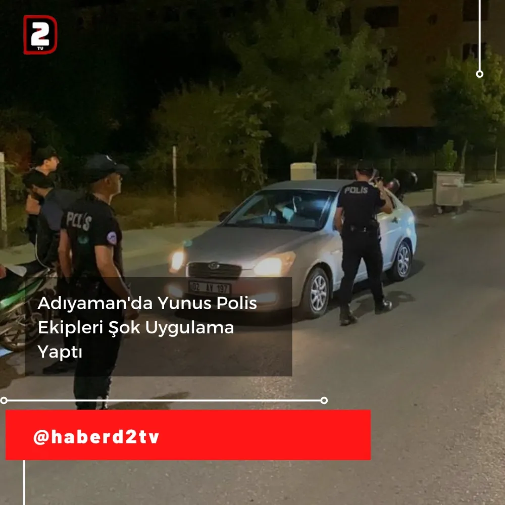 Adıyaman İl Emniyet Müdürlüğüne bağlı Yunus Polis Ekipleri, halkın can ve mal güvenliğini korumak amacıyla Yeni Mahalle Karapınar Caddesi üzerinde şok uygulama gerçekleştirdi. Araçlar tek tek durdurularak arandı, araç içerisinde bulunan kişilerin üst aramaları ve kimlik sorgulamaları yapıldı. Uygulamaların devam edeceği bildirildi.Adıyaman İl Emniyet Müdürlüğüne bağlı Yunus Polis Ekiplerince şok uygulama yapıldı.Halkın can ve mal güvenliğinin korunması amacıyla Asayiş Şube Müdürlüğüne bağlı Yunus Polis Ekiplerince Yeni Mahalle Karapınar Caddesi üzerinde uygulama yapıldı. Gerçekleştirilen şok uygulamada araçlar tek tek durdurularak arandı. Araç içerisinde bulunan kişilerin de üst aramaları ve kimlik sorgulamaları gerçekleştirildi. Uygulamaların aralıksız bir şekilde devam edeceği belirtildi.