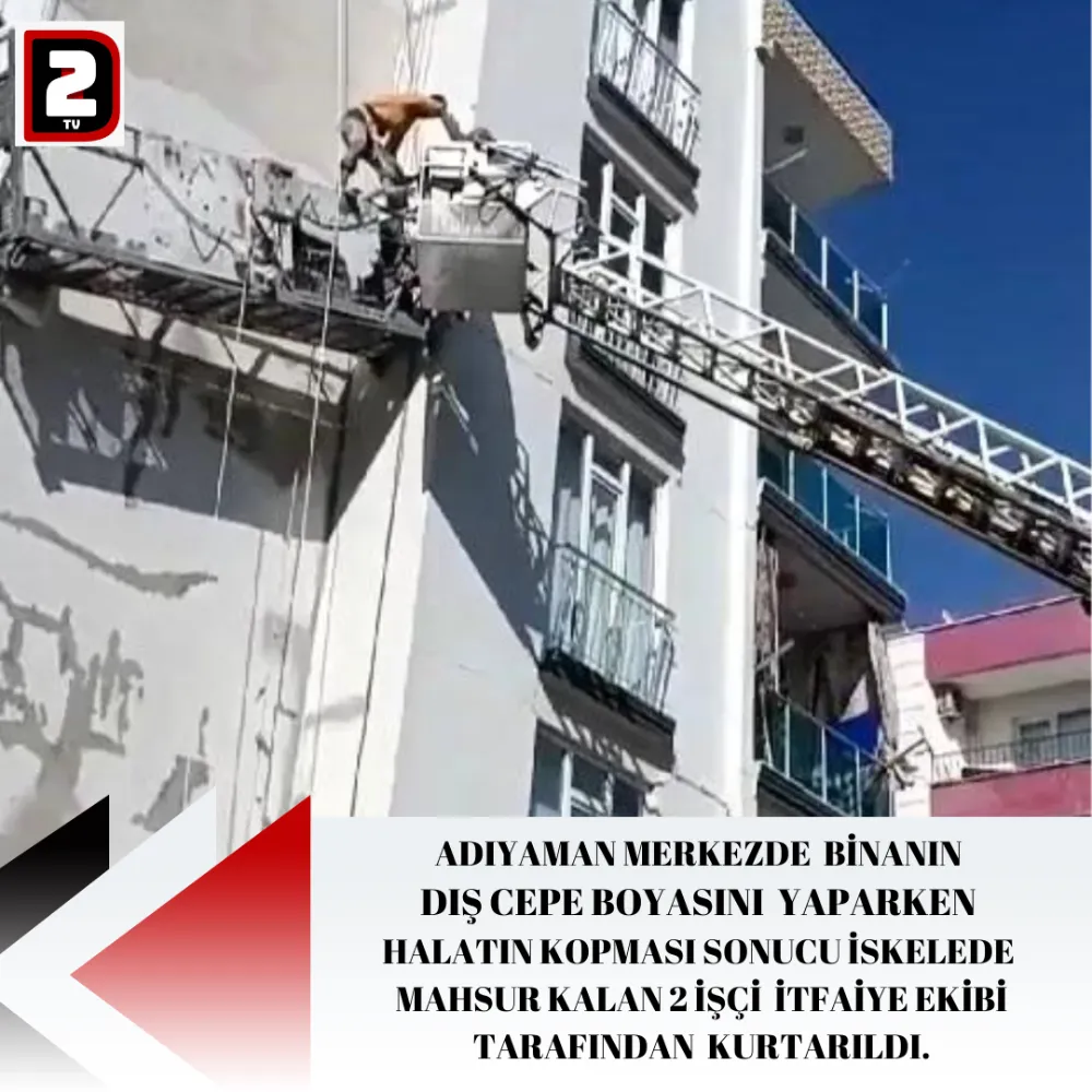 Adıyaman'da dış cephe boyasını yaparken halatın kopması sonucu iskelede mahsur kalan 2 işçi itfaiye ekipleri tarafından kurtarıldı.