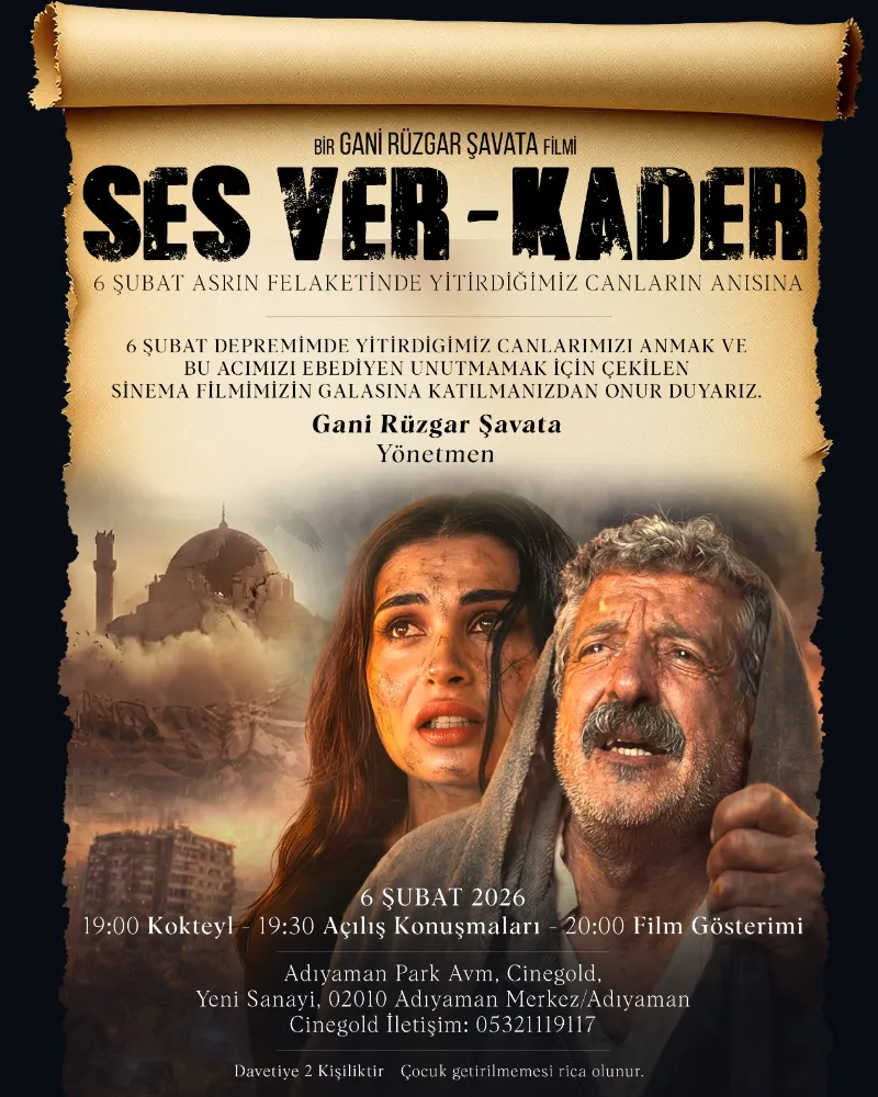 Malatyalı usta yönetmen Gani Rüzgar Şavata, toplumsal gerçekçi sinema anlayışını bu kez 6 Şubat depremlerinin derin izleriyle birleştiriyor. Çekimleri Elazığ’ın Keban ilçesinde gerçekleştirilen ve büyük bir merakla beklenen “Ses Ver Kader” filmi, deprem gerçeğini mahkumların gözünden beyaz perdeye taşıyor.